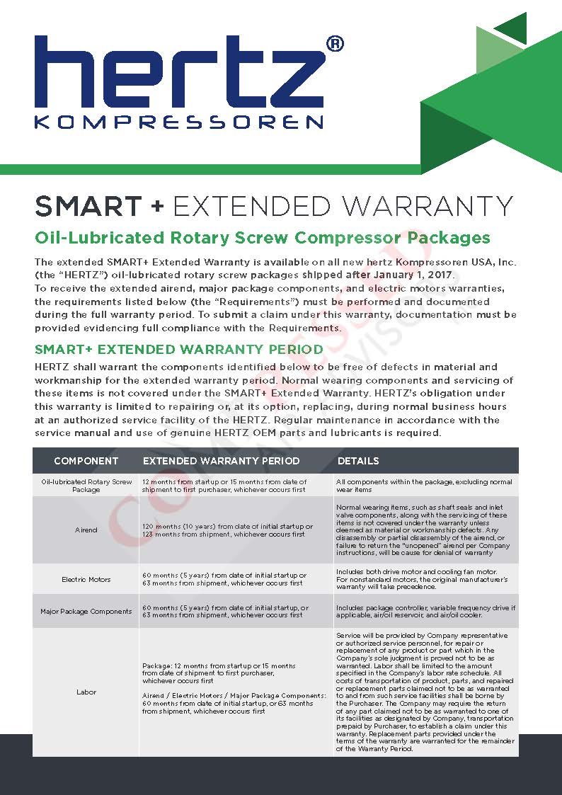 • Peace of Mind: Optional 10-Year Airend Warranty backed by Hertz Kompressoren and the experts at Compressed Air Advisors Online.