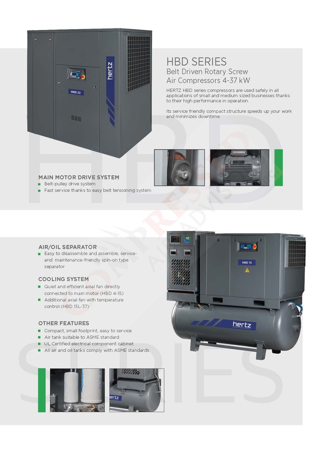 • Engineered for Longevity: Built with Hertz’s patented screw block, high-efficiency IE3 motor, and robust belt-driven system for long-term reliability.