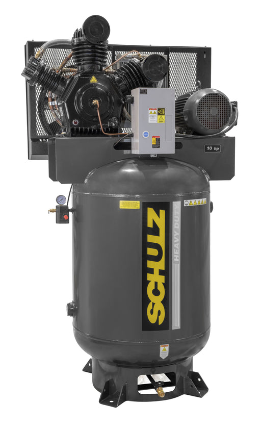 View full detailsSchulz of America 10120VW40X 10hp Heavy Duty V-Series Reciprocating Air Compressor, 120 Gallon Vertical Tank, 25.9 CFM @ 175 PSI
