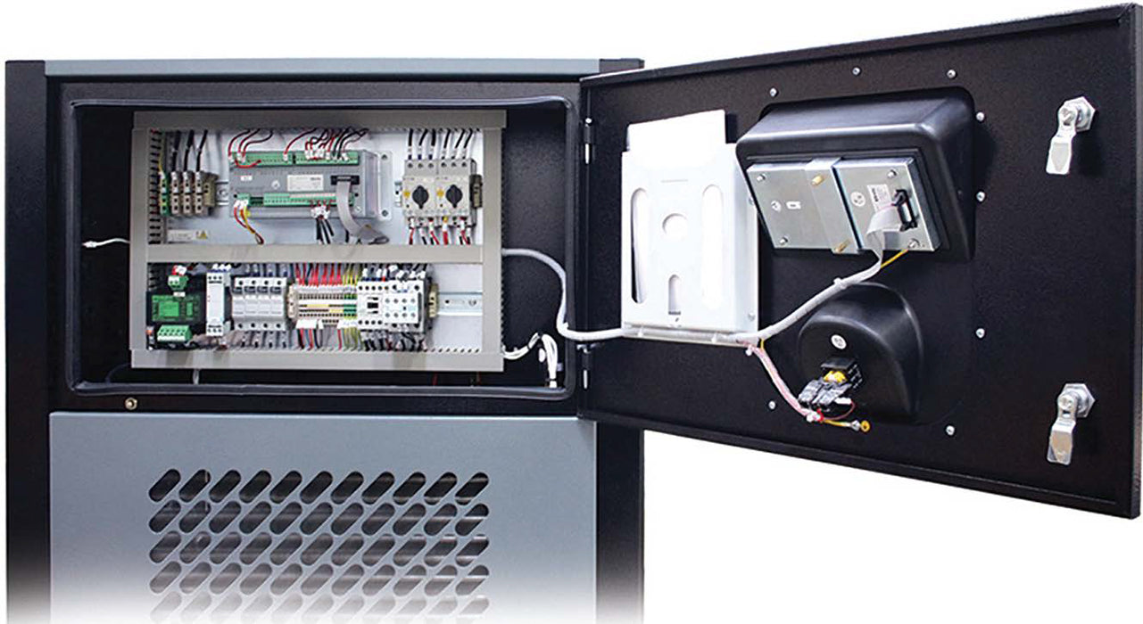 There are no electrical wires inside the refrigerant side of the dryer. The electrical box has an external cover which has an access from the outside of the dryers. There is no need to open the dryer panels to enter the electrical box.