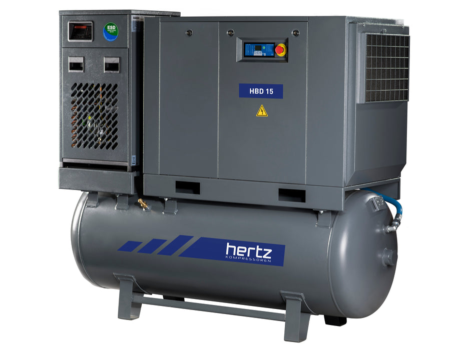 Hertz Kompressoren HBD11 TMD - 15hp Belt Driven Rotary Screw Air Compressor, 120 Gallon Air Receiver, Refrigerated Air Dryer, 63 CFM @ 125 PSI